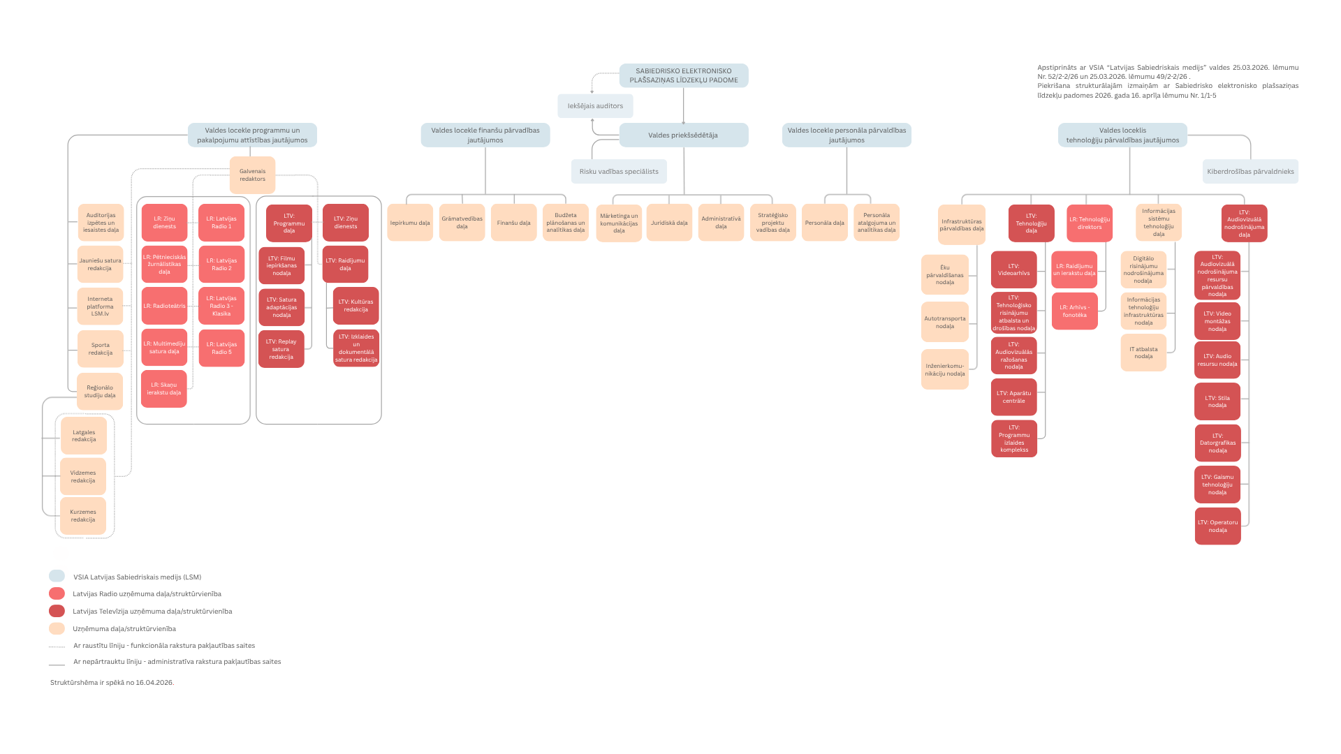 Latvijas Sabiedriskā medija organizatoriskā struktūra (struktūrshēma stājas spēkā no 16.04.2026.)